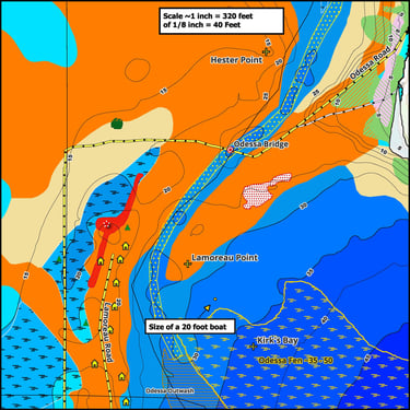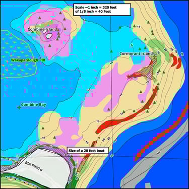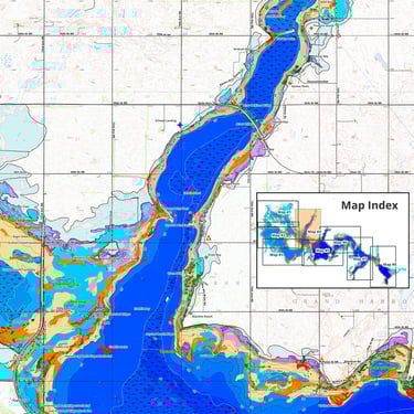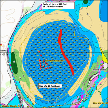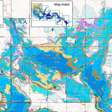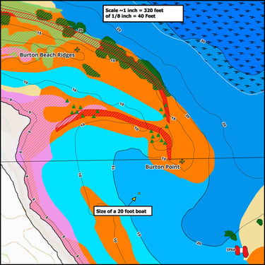 Walleyes, perch, and northern pike are common catches using these maps.